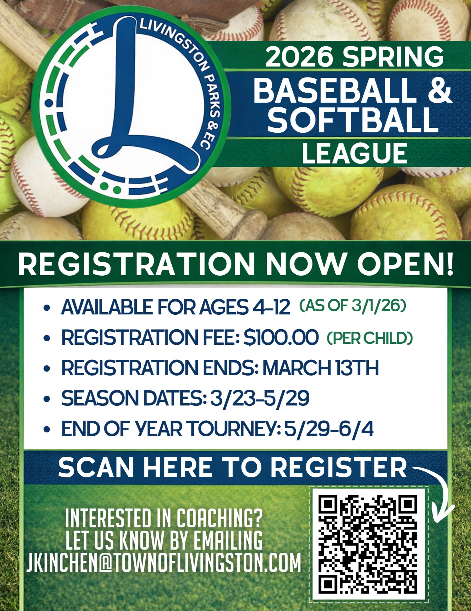 Livingston Parks & Recreation - 2026 Spring Baseball & Softball